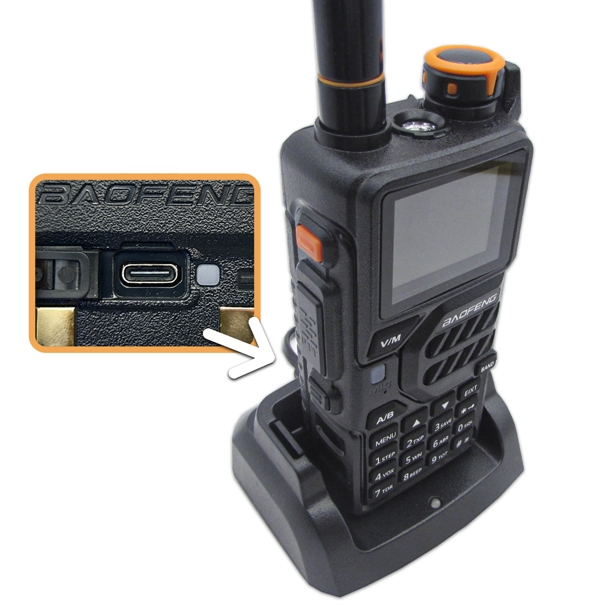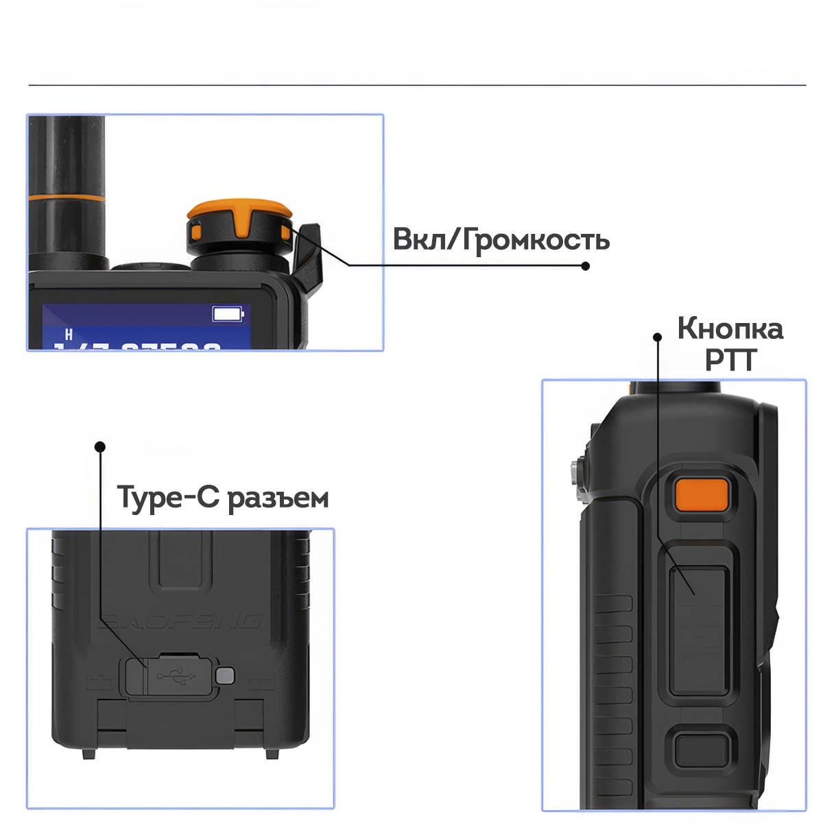 Аккумулятор. Рация Baofeng K5 Plus имеет аккумулятор емкостью 2500 мАч, благодаря которому она может работать до 24 часов без подзарядки. Аккумулятор оснащен разъемом USB Type-C для максимально быстрой и удобной зарядки.