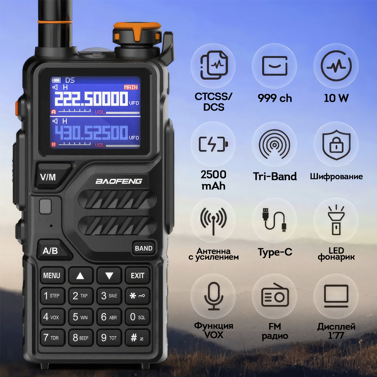 Представляем вашему вниманию новинку 2023-2024 года - радиостанцию Baofeng К5 Plus мощностью 10 Вт! Этот универсальный прибор поддерживает работу в 5 различных диапазонах, что позволяет ему связываться с большинством радиостанций по всему миру. Аккумулятор заряжается через разъем USB Type-C, обеспечивая продолжительную работу без необходимости частой зарядки. Стильный дизайн радиостанции и цветной дисплей делают ее не только функциональным, но и привлекательным аксессуаром. С Baofeng К5 Plus вы всегда будете на связи, независимо от того, где находитесь.