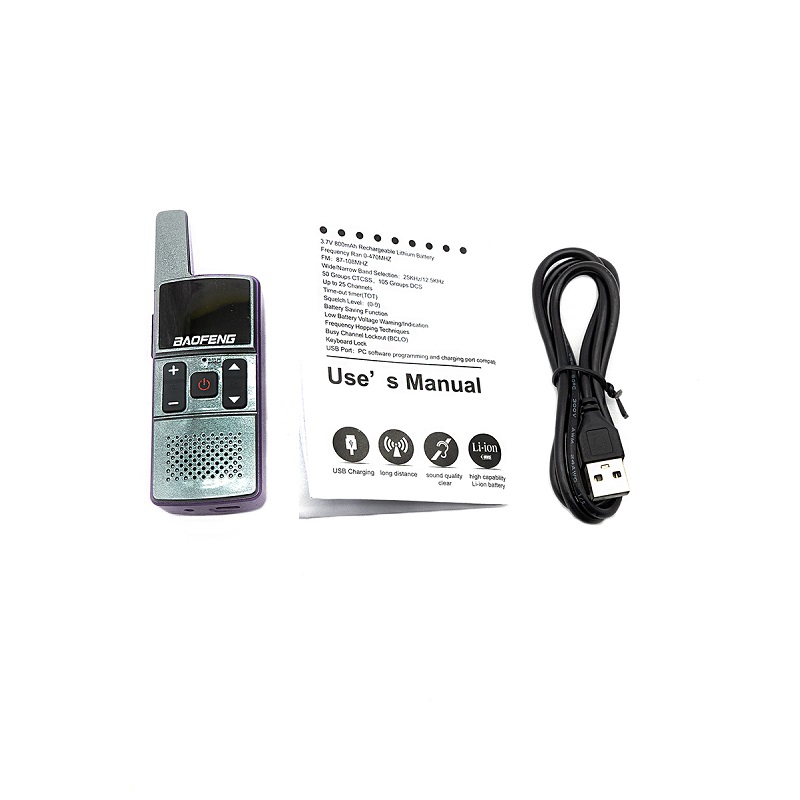 Рация - 1шт, Аккумулятор - 1шт, Зарядное устройство - 1шт, Инструкция на английском языке - 1шт. |