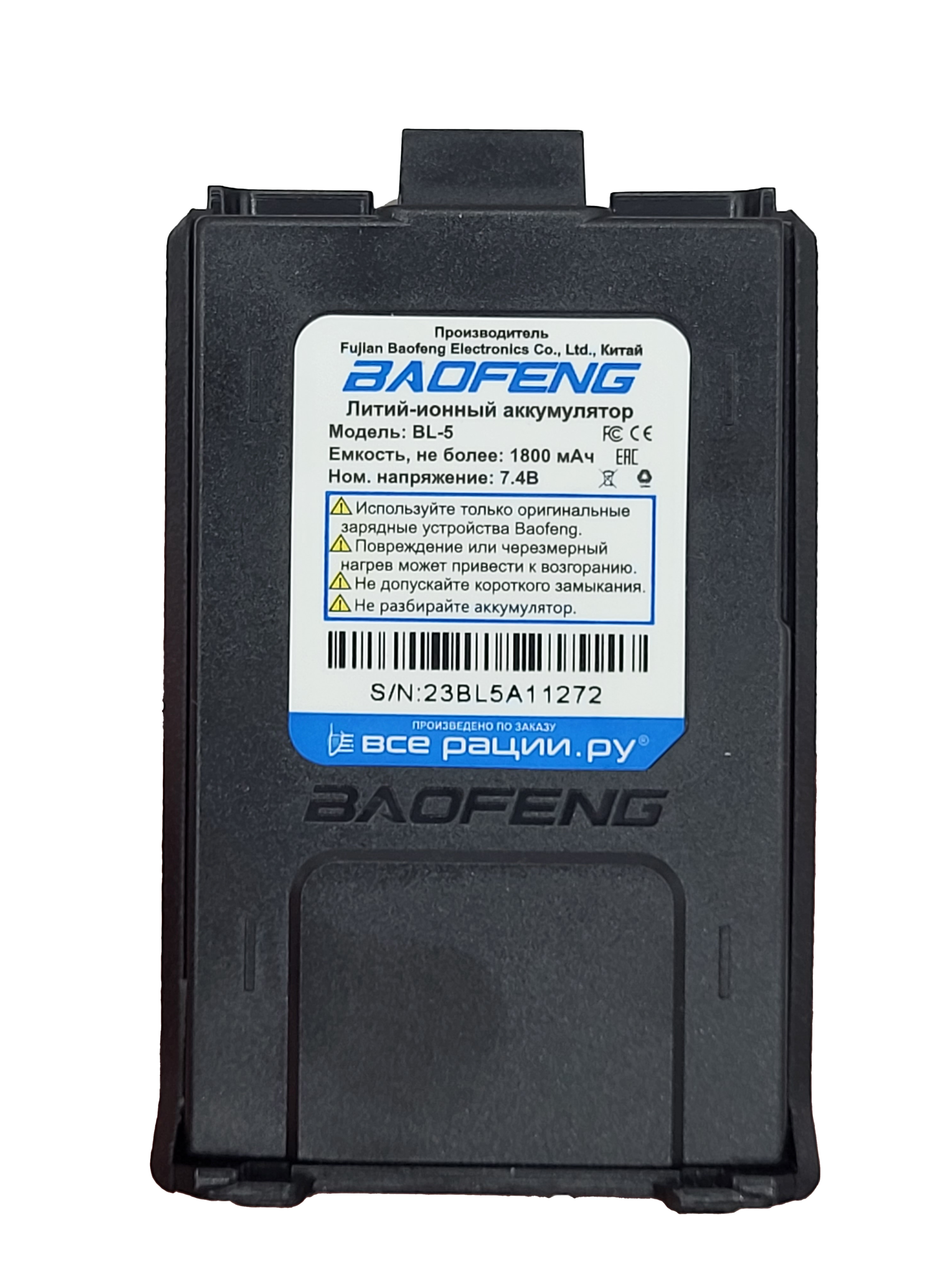 Питание осуществляется от стандартного аккумулятора BL-5 7,4 В 1800 мАч. Все аксессуары и комплектующие, а также инструкция по эксплуатации полностью совместимы и взаимозаменяемы с Baofeng UV-5R.