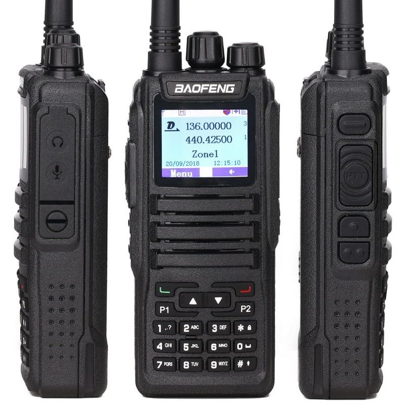 Цифровая рация с отличной дальностью, 10-13 км без помех и шумов берёт не напрягаясь. Можно программировать и с ПК, и с клавиатуры, что очень облегчает использование.