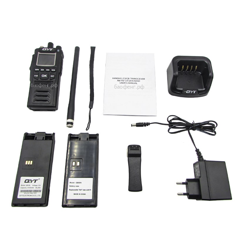 Рация - 1шт, Антенна - 1шт, Аккумулятор - 1шт, Кейс под батарейки - 1шт, Зарядное устройство - 1шт, Ремешок - 1шт, Клипса на пояс - 1шт, Инструкция на английском языке - 1шт. |