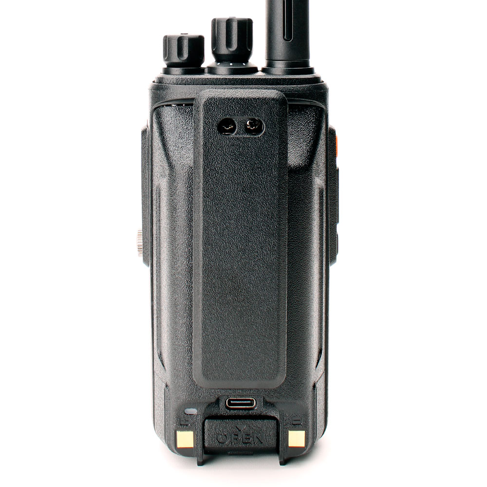 Рация работает в двух диапазонах частот: VHF (136–174 МГц) и UHF (400–470 МГц), что обеспечивает стабильную связь в самых разных условиях.