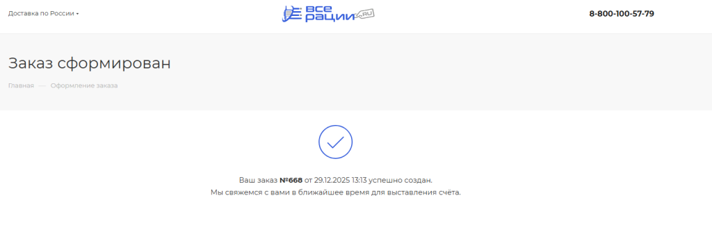 Поздравляем! Заказ оформлен, товар уже комплектуется и скоро будет у вас!